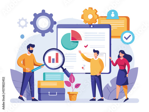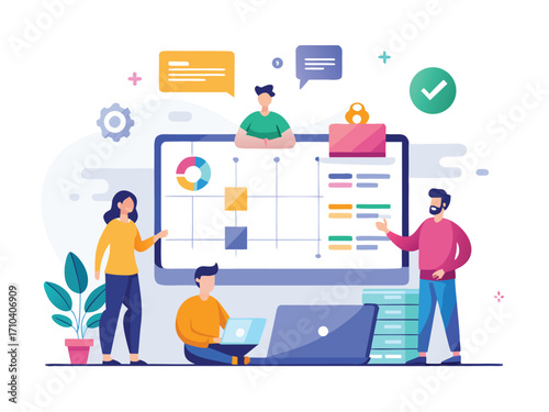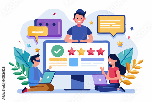 Vektorová ilustrace velkého počítače a malých lidí, kteří nakupují tašky, boty v internetovém obchodě. Online nakupování, koncept elektronického obchodu pro webový banner, webovou stránku atd.