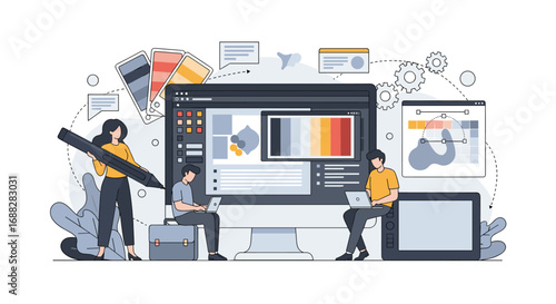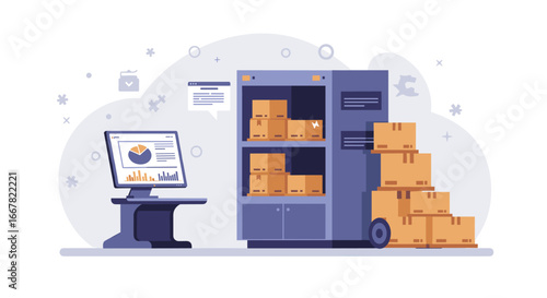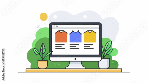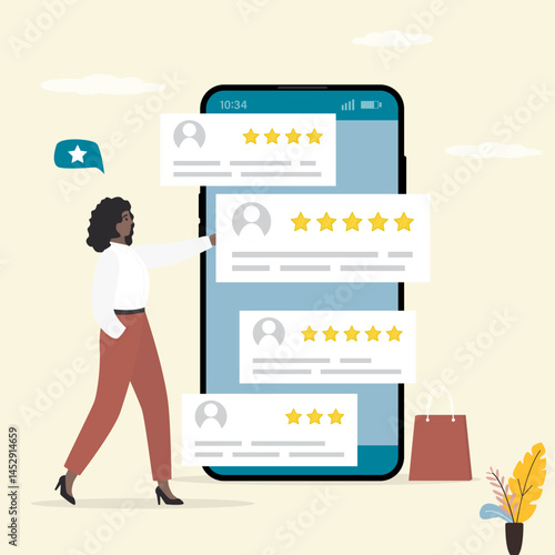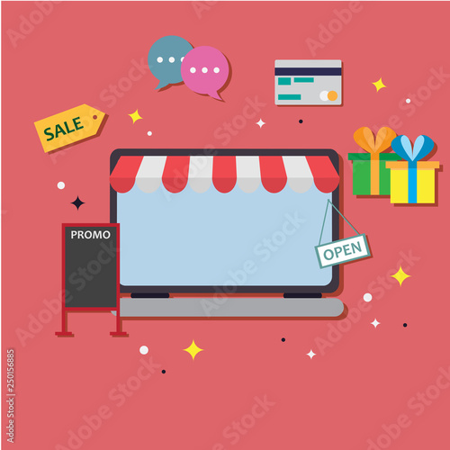 Online nakupování a dodávka koncept ploché vektorové ilustrace. Internetový obchod, mobilní platby, e-commerce. Nákup produktů přes internet proces s znaky kupujícího a prodávajícího.
