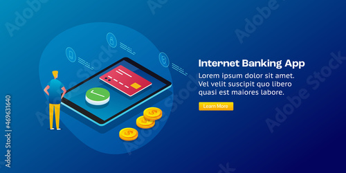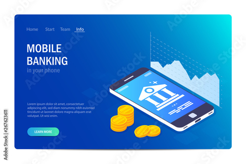 Šablona webových stránek vstupní stránky online nakupování. Vektorový izometrický smartphone s nákupním košíkem, kreditní kartou atd. Internetový obchod, mobilní marketing a e-commerce.