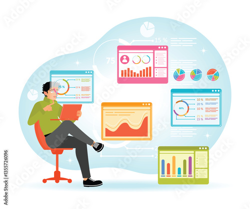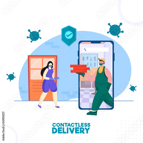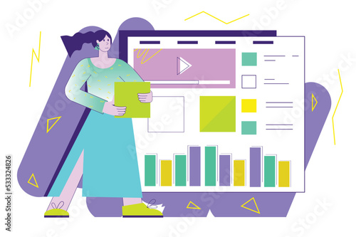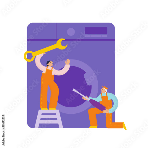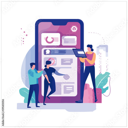 Nakupování na internetu, vektorové ilustrace. Obrovské tablety a mikro mužské a ženské postavy nakupující oblečení na internetu. Internetový obchod, e-commerce složení pro web banner, webové stránky atd.
