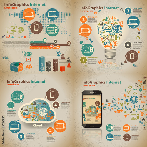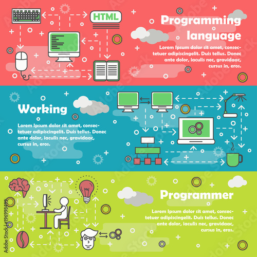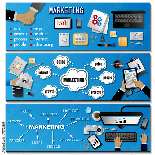 Vektorová sada horizontálních bannerů s internetovým obchodem, Online aplikacemi, prvky designu call centra Art flat style, webové šablony.