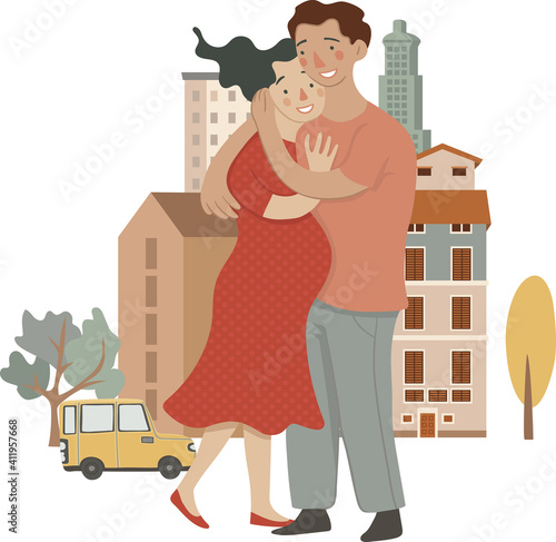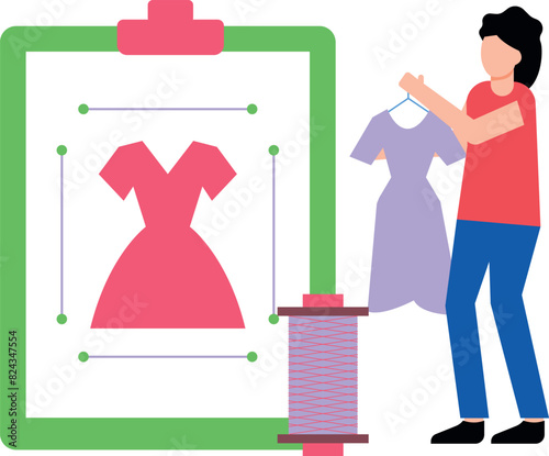 Dámské oblečení obchod interiér a červené šaty na manekýn, nákupní taška, balík, peněženka s kreditní kartou, vektorové ilustrace. Online platba kartou, online nakupování.