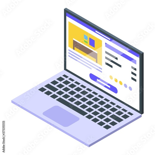 Online automat na notebooku vektoru. Jackpot ovoce karban 777 počítačová hra. Izometrický design izolovaných na bílém pozadí
