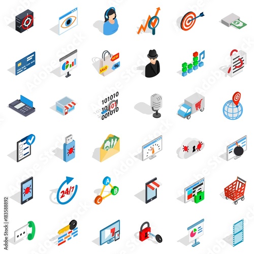 Internetový obchod izometrická sada ikon, plochý vektorový izolovaný obrázek. Prodej a slevy, Černý pátek, elektronická platba, elektronický obchod, dárkový poukaz, věrnostní program. Nakupování.