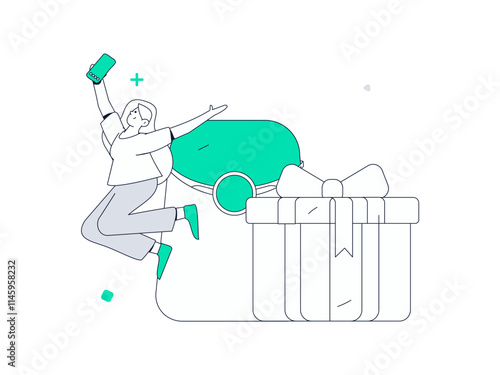 Dívka se sluchátky na uších a smartphone dělá warrior 2 jóga představují doma spolu s on-line trenér na mobilní obrazovce, vektorový plochý styl designu ilustrace. Online kurzy jógy a meditace.