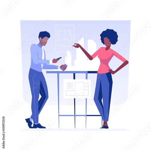 Oftalmolog kontroluje zrak svého pacienta pomocí očního testovacího stroje, vektorové ploché ilustrace. Optometrie, oftalmologická diagnostika, koncepce korekce zraku pro webový banner, webovou stránku atd.