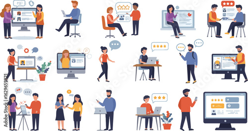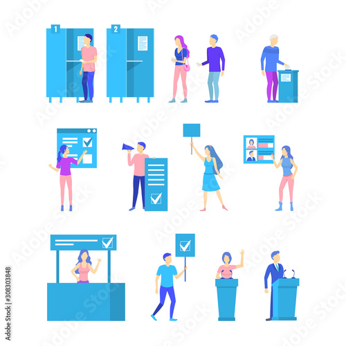 Oftalmologická sada, plochý vektor izolovaná ilustrace. Postavy pacienta s okulistou. Graf pro kontrolu očí. Oční vyšetření zraku, test zraku. Optometrie, oftalmologická diagnostika