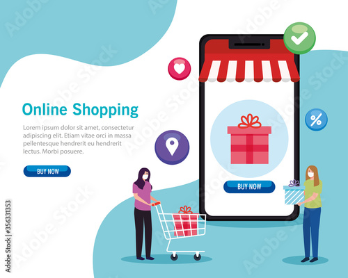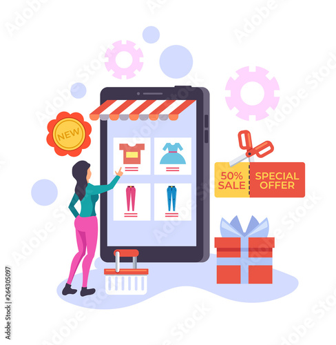 Jídlo online vektorové izometrické ilustrace. Online objednávka kávy, rychlého občerstvení, pizzy, asijského jídla, pečiva prostřednictvím smartphonu.