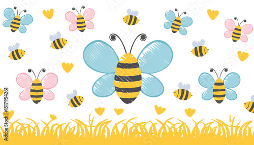 Ikona organického medu. Vektorové nálepka, štítek nebo logo s nadpisem textu, včela a sladký nektar v jar designu izolovaných na bílém pozadí