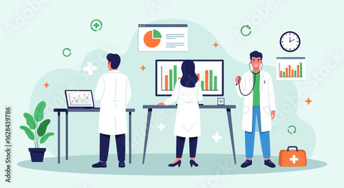 Osteopatie sezení a léčba. Drobné postavy lékaře zkoumající skenování páteře pacienta, ploché vektorové ilustrace. Muž s kostní nemocí. Osteopatická medicína.