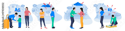 Nadváha muž ve stresu pocit sociálního tlaku, šikana a společnost obviňovat ploché vektorové ilustrace. Obézní tělo hanba a diskriminace koncept
