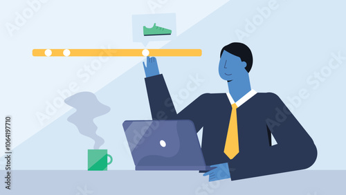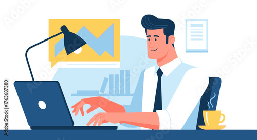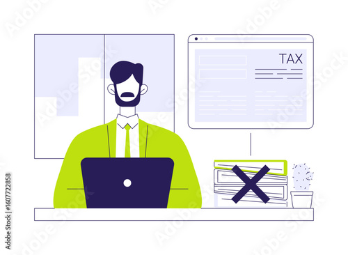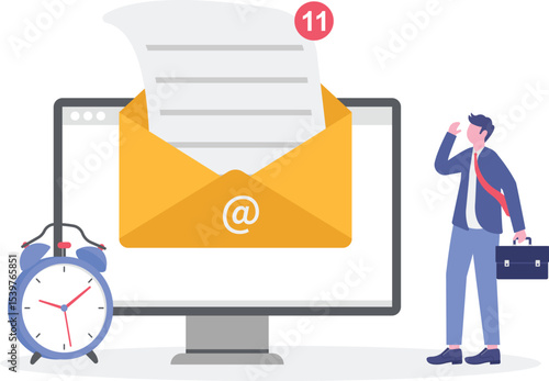 Přepracovaný muž pomocí notebooku pro vektor ikon online práce. Zaneprázdněný freelancer sedí na stoh kancelářské složky práce na počítači izolovaných na bílém pozadí