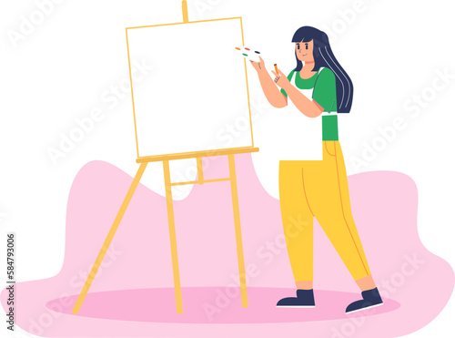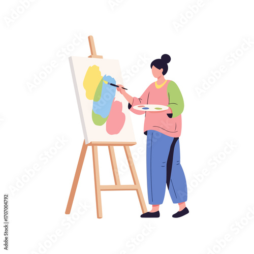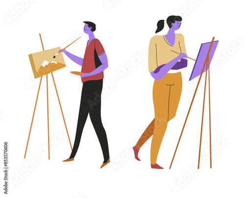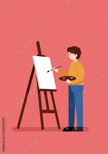 Painter pracuje na svém stojanu. Vektorové ilustrace.