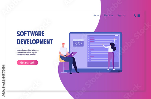 Šablona vstupní stránky malíře. Koncept designu vektorového plochého stylu pro web umělce a vývoj mobilních stránek. Lidská ruka drží štětec, Paleta, stojan, Plátno, Barva trubice. Umělecké malířské služby
