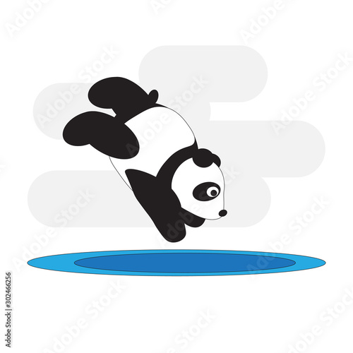 Roztomilý panda skákání na trampolíně vektorové ikony. Legrační cvičení pro kreslené dítě medvěd. Energický dítě zvíře charakter sport a fitness ventilátor izolovaných na bílém pozadí