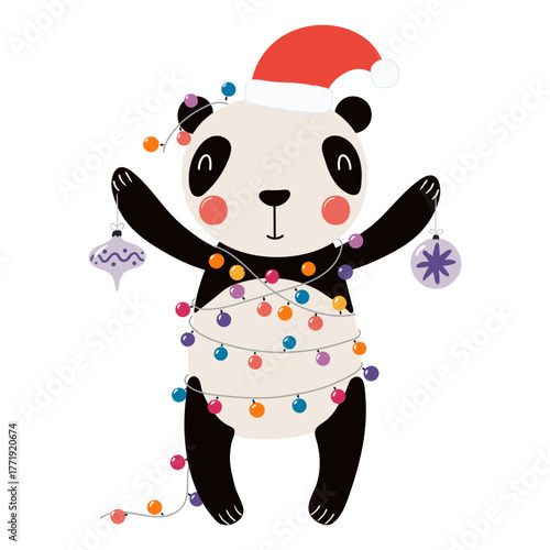 Panda pirate vector. Roztomilý medvěd námořník drží ikonu záchranného kruhu. Legrační dítě zvíře Námořní charakter ilustrace izolovaných na bílém pozadí