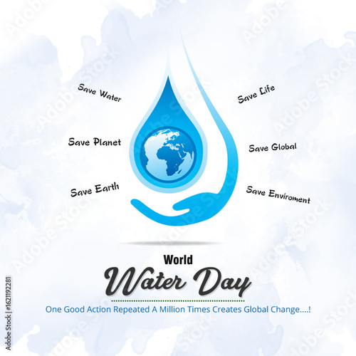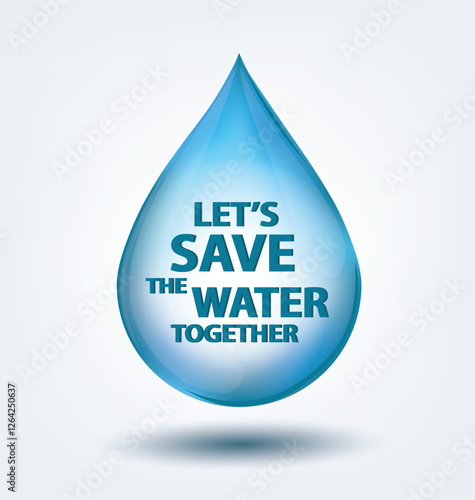 Papír cut craft styl modrá kapka vody s uložit vodu nápisy, vektorové izolované ilustrace. Ochrana vody, ekologie, ochrana přírody.