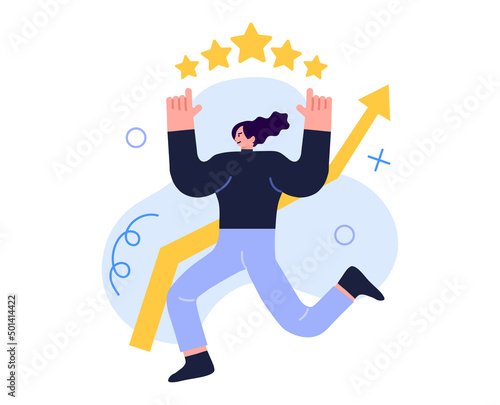 Papír řez řemeslo styl úspěšný podnikatel vítěz silueta držení trofej pohár, vektorové ilustrace. Finanční růst, výdělky, příjmy, obchodní úspěchy.