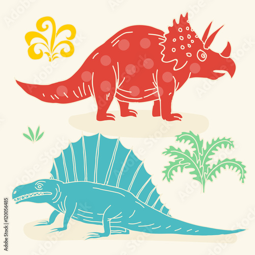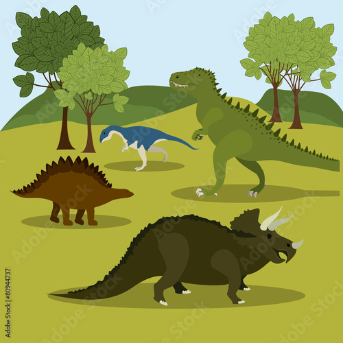 Papírové siluety dino a přírodní krajina. Stegosaurus, brontosaurus dinosaurus, Pteranodon létající plaz, vektorové ilustrace. Vzdělávání dětí. Archeologie, historie.