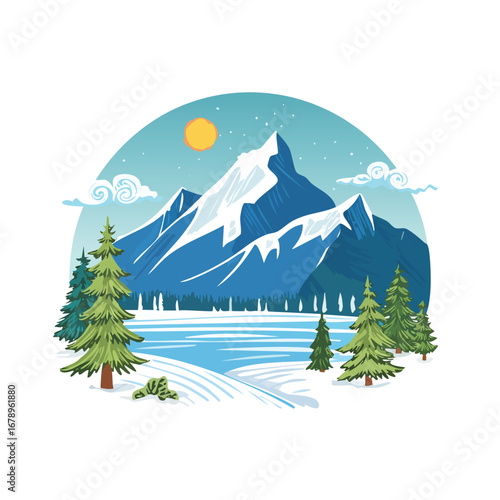 Papír řezané zimní horské krajiny a turista horolezec pár siluety, vektorové ilustrace. Turisté s batohy jít pěší turistiku, trekking. Zimní turistika, cestování, dobrodružství, horská turistika.