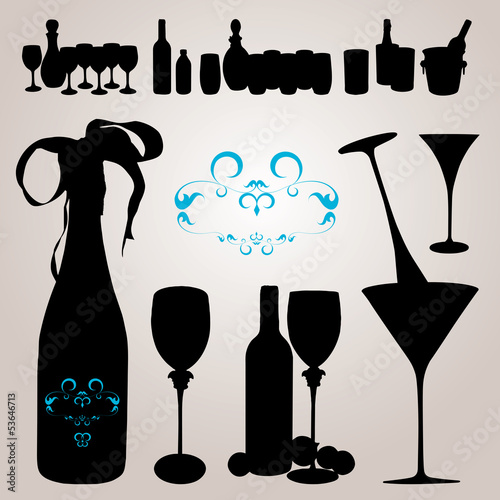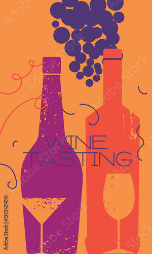 Papír řezané červené víno splash s hrozny, láhev a sklenice na víno siluety, vektorové ilustrace. Menu restaurace, plakát, banner, šablona letáku.