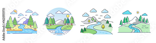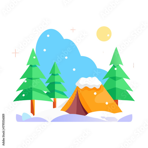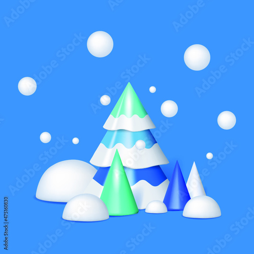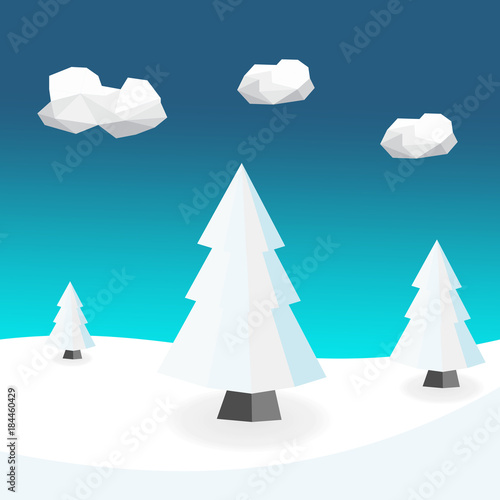 Papercut winter river vector. Horská 3D krajina ilustrace. Origami polní prostředí se zasněženou zemí a skalním vrcholem. Vánoční a novoroční koncept