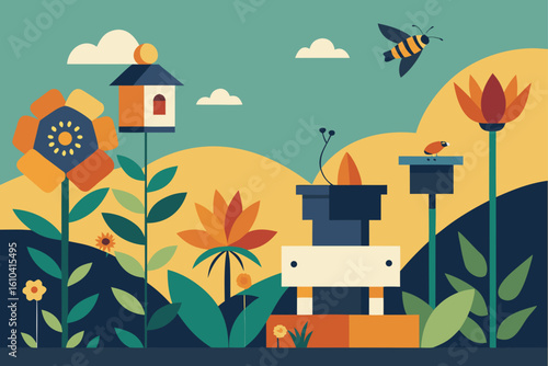 Rodiče vytvářející dětský svět, vektorová plochá ilustrace. Šťastná dívka malování svět obraz sedí na ramenou otců. Máma a táta modelování chování a formování mysli dítěte jako dělat puzzle.