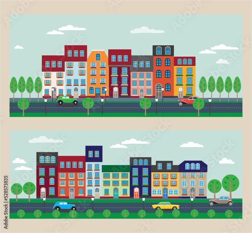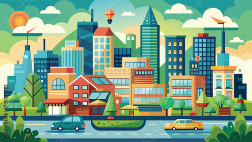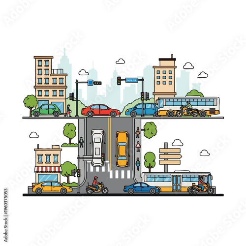 Vektorová ilustrace parkoviště se zaparkovanými automobily, odtahový vůz evakuující Auto, parkovací asistent ve strážní kabině, řidič přijímající parkovací lístek. Ploché designové prvky.