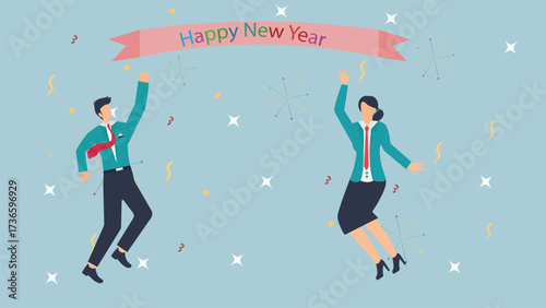 Happy office lidé kreslené postavičky jít na večírek s dortem, šampaňské, balónky, dárkové krabičky, vektorové ploché ilustrace. Koncept oslavy firemní párty pro webový banner, webová stránka.