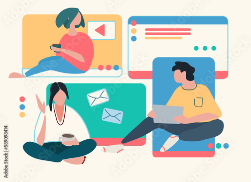 Cestující vlaku. Žena a muž na sedadle vektorové ikony izolované pozadí.