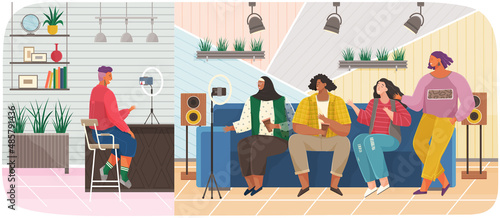 Cestující se zavazadly v letištní čekárně, ploché vektorové ilustrace. Lidé čekají na let v odletové hale.