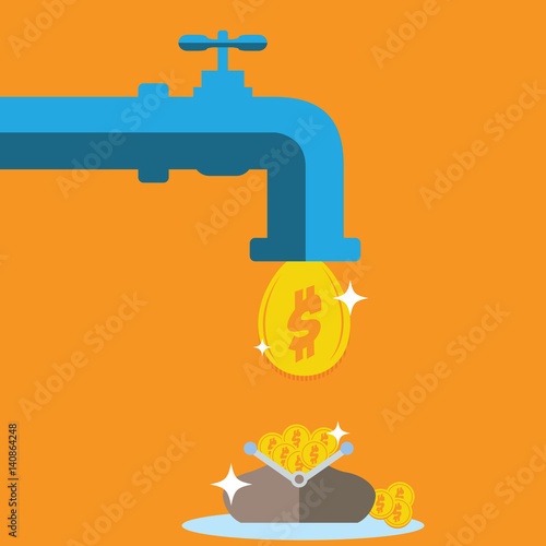 Koncept pasivního příjmu. Kreslené vektorové ilustrace. Klepněte na Zlatý dolar kapičky.