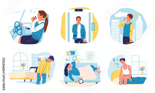 Pacient hostující lékař scéna set, ploché vektorové ilustrace. Jmenování lékařů, konzultace, léčba. Lékařská péče pro osoby se zdravotním postižením. Intravenózní injekce. Břišní ultrazvukové vyšetření. Lékárna.