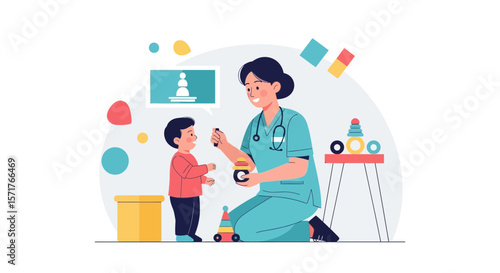 Pediatr lékař předepisující lék pro léčbu dětí návštěva kliniky s matkou, vektorové ilustrace. Pediatrická prohlídka, koncept lékařského předpisu pro webový banner, webovou stránku atd.
