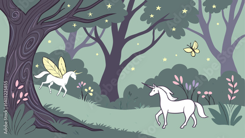Pegasus, okřídlený kůň magický mýtický pohádkový charakter silueta, vektorové ilustrace. Pohádková kompozice v papírovém uměleckém řemeslném stylu.