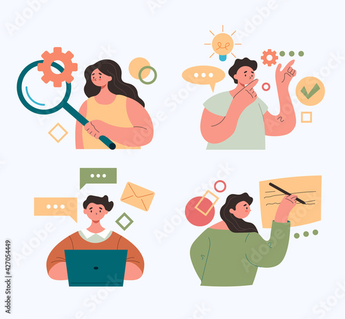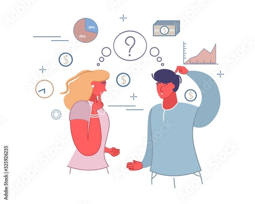 Šťastný Starší pár plánuje důchod, vektorové ploché ilustrace. Penzijní plán, koncept finančních úspor pro webový banner, webovou stránku atd.