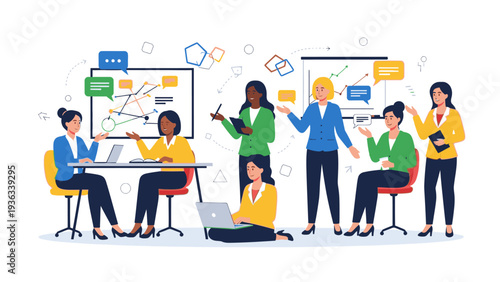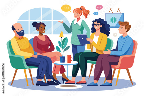 Skupina lidí a prázdná kancelářská židle boss, plochá vektorová izometrická ilustrace. Řízení lidských zdrojů, nábor, nábor.
