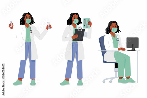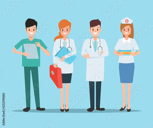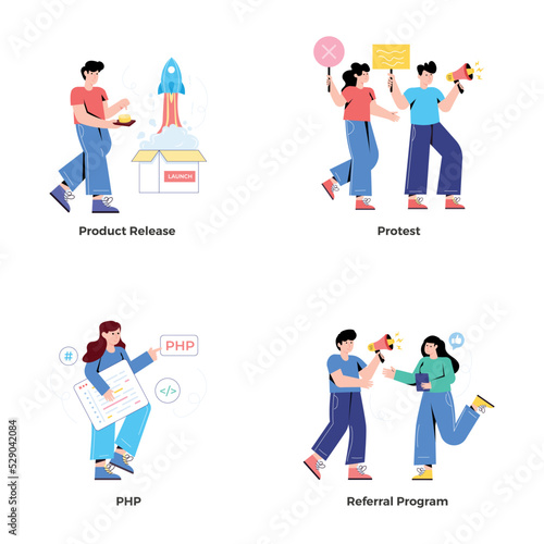 Pacienti, mužské a ženské postavy ukazující stop hand sign lékaři s injekční stříkačkou, ploché vektorové ilustrace. Lidé proti vaxxerům, kteří odmítají injekci vakcíny covid-19. Váhání s vakcínou. Anti vax.