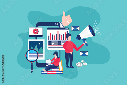 Lidé jsou velmi překvapeni a cítí obavy z blokovaného uživatelského účtu, ploché vektorové ilustrace. Blokování stránky na sociálních médiích.