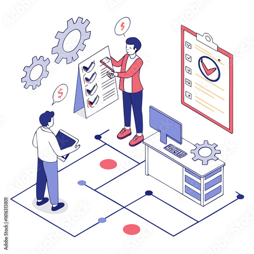 Lidé chytání chyb na obrazovce smartphonu, ploché vektorové izometrické ilustrace. Mobilní vývoj a testovací proces, zajištění kvality, ladění.