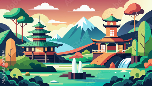 Lidé slaví Nový rok a vánoční svátky mimo město v horách, ploché vektorové ilustrace. Šťastné páry pití svařeného vína, bruslení. Zimní dovolená.