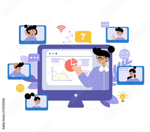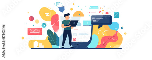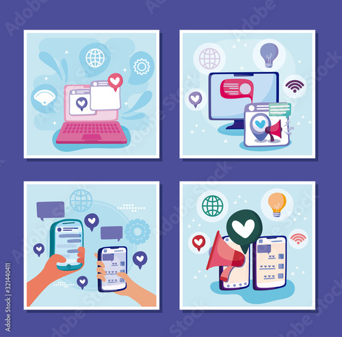 Lidé chatování na sociálních sítích, plochý vektor izolované ilustrace. Digitální komunikace. Online konverzace. Sociální média.