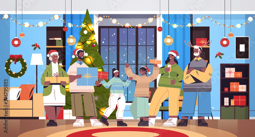 Lidé město Občan připravuje na Vánoce a Nový rok oslava vektorové ilustrace. Muž a žena drží vánoční strom, dárková krabička, různé nákupy chůze na zasněžené pouliční scéně