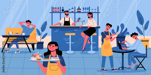 Lidé čištění obývacího pokoje, ploché vektorové ilustrace. Domácí práce, domácí práce, každodenní rutina, úklid, úklid společnosti.