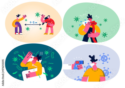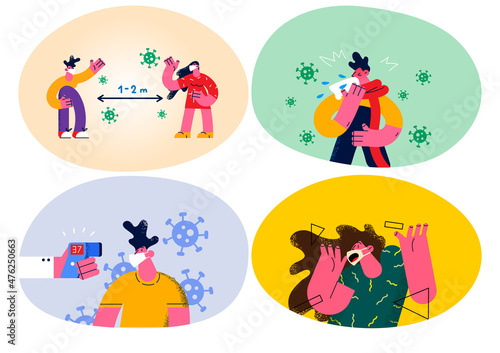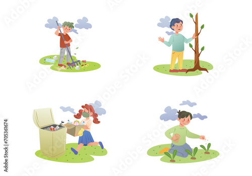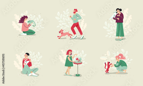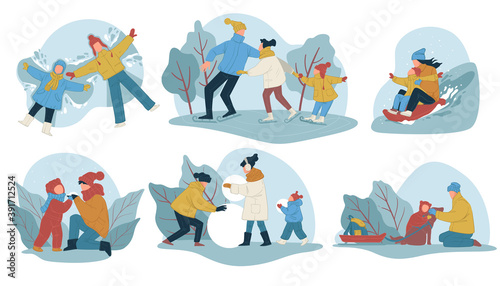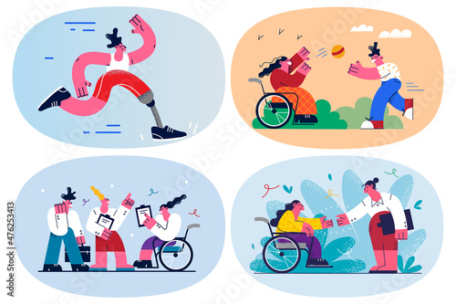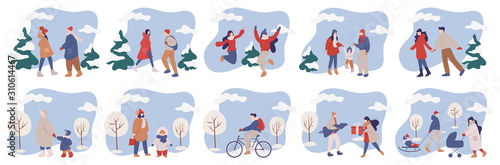Sport lidé muž žena kreslené postavičky jízda na kole, hrát badminton, běh, kolečkové brusle, dělat jógu, jízda na koloběžce, vektorové ploché izolované ilustrace. Letní outdoorové sportovní aktivity.