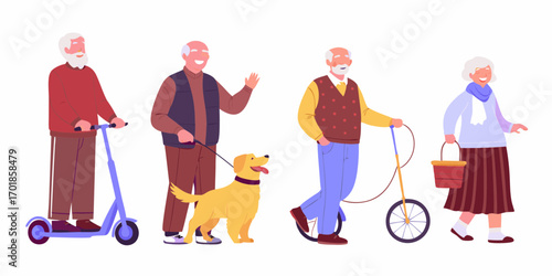 Lidé různého věku pitné vody, vektorové ploché izolované ilustrace. Mladý muž a žena, dívka dítě, dědeček pocit žízně, pití čisté čerstvé vody z plastových lahví, skla a šálku.