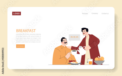 Lidé jíst pokrmy s medem na snídani. Sladký med zdravé občerstvení. Obrazovky mobilních aplikací. Šablona vektorového banneru pro vývoj webových stránek a mobilních zařízení. Webové stránky a UI design ilustrace.