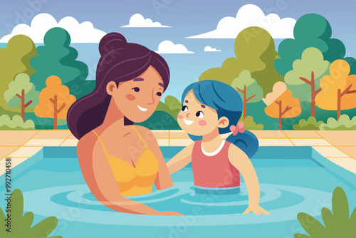 Bazén s horkými prameny. Lidé se těší termální vody, ploché vektorové ilustrace. Šťastný pár s venkovní koupel. Onsen, Japonské přírodní letovisko horkých pramenů. Relax, rekreace.
