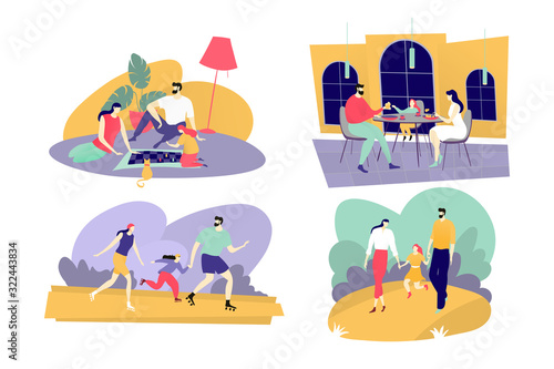 Lidé se těší jejich koníčky vektorové ploché ilustrace. Malování, baletní tanec, šití, sochařství nebo modelování hliněných lidských poprsí. Umělecké a řemeslné koníčky.