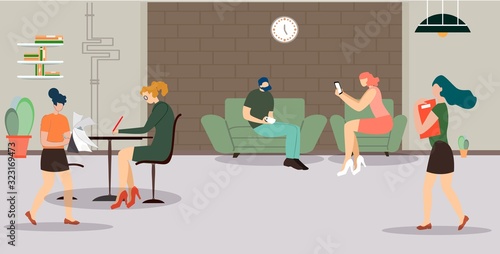 Lidé dostávají hlavu, masáž zad, meditují v lotosové pozici, ploché vektorové ilustrace. Masážní terapie a relaxační procedury. Proti stresu relaxace. Lázeňské a kosmetické ošetření.